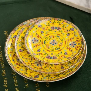 Vintage Enamel Glazed Bone China Flat Plates Round Ceramic Platter Luxury Serving Dinner Dishes and Plates