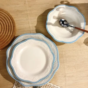 Vintage Bowknot Pearl Relief Lines Ceramic Dishes Plates Suitable for Wedding Party and Restaurant and Dessert Decorations