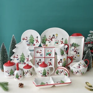 Wholesale Christmas Ceramic Tableware Creative Dinner Plate Rice Bowl Mug Set Snack Dish Soup Bowl