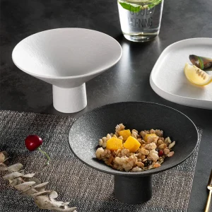 Wholesale Creative Simple Ceramic Dish High Leg Dinner Fruit Plates for Dessert or Stemware for Hotels