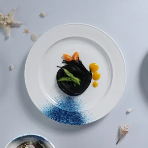 Белая и синяя керамическая посуда, посуда для ресторана, тарелки для гостиниц, тарелки для еды
