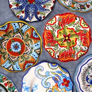 Bohemian Unique Style Rice Salad Floral Design Round Dinner Ceramic Nordic Porcelain Dessert Plate