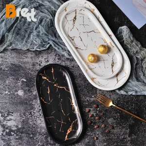 Brett Nordic Marble Прямоугольная овальная керамическая западная белая черная тарелка для суши Тарелка для зарядного устройства для ресторана 10,5 «13,5»