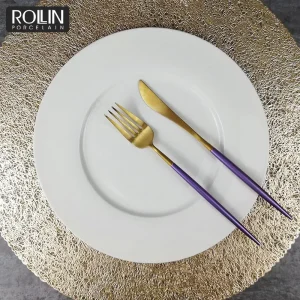 Блюда для ужина, тарелки с золотой каймой, оптовая продажа, матовый черный круглый круглый стол для сервировки западной еды, итальянский ресторан