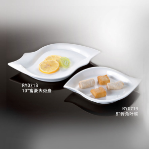 Горячий продукт для отелей и ресторанов, керамическое блюдо S-образной формы с белым листом, 8-дюймовая фарфоровая тарелка, набор сервировочных тарелок для кейтеринга