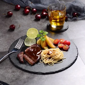 Круглая каменная тарелка для фаст-фуда, сланец 30 см, черная посуда для ужина, керамическая посуда, сервировочная посуда для кейтеринга, шведского стола, ресторана