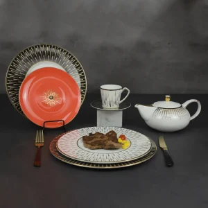 Коричневые наборы посуды, поднос для тарелок, оптовая продажа, OEM, отель, ресторан, керамика, набор тарелок в деревенском стиле, посуда, тарелки, керамика