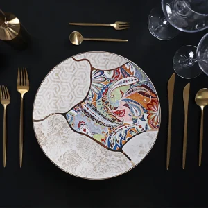 Китайские обеденные тарелки из костяного фарфора с золотой оправой, столовая посуда с золотыми наклейками, отель Гуанчжоу, Чаочжоу, поставщик керамики, тарелки из костяного фарфора