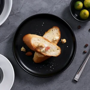 Матовая круглая черная фарфоровая посуда для стейка Черная матовая посуда Керамическая посуда Обеденные тарелки для отеля
