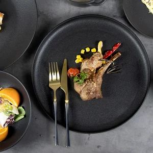 Оптовая продажа керамической посуды Брендовый ресторан Черные матовые обеденные тарелки Кейтеринг Черная тарелка Блюда для шведского стола