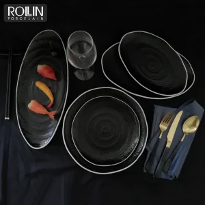 Оптовая продажа дорожной посуды Hotel Platos Para Restaurantes Керамический сервиз в западном стиле Черная фарфоровая посуда