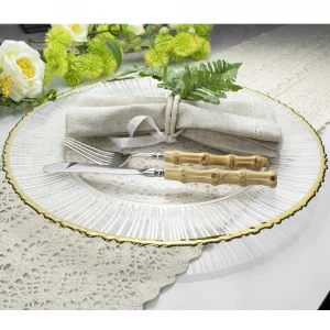 Оптовая продажа, свадебная вечеринка, изысканная круглая посуда, стеклянные обеденные тарелки, прозрачные тарелки с зарядным устройством из бисера, стекло