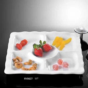 Оптовая продажа, керамическая тарелка с логотипом для шведского стола, посуда для общественного питания, ресторанная фарфоровая тарелка с 5 отделениями для отеля