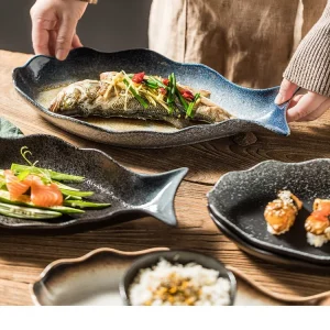 Прямая продажа с фабрики, оптовая продажа, керамическая овальная рыбная тарелка для отелей, напечатанная на заказ, обеденные тарелки неправильной формы из фарфора для ресторанов