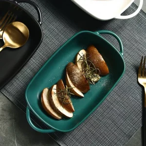 Прямоугольная форма для выпечки в микроволновой печи, керамический обеденный набор, скандинавская форма для выпечки, фарфоровая форма для выпечки с ручкой, форма для выпечки
