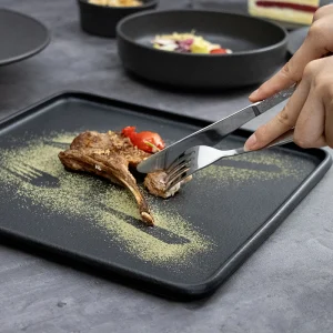 Фарфоровые тарелки ресторана обеденной тарелки для стейка квадратной формы нордической черной формы