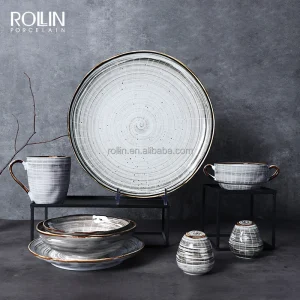 Чаочжоу керамическая белая свадебная круглая посуда фарфоровая тарелка Золотая керамическая посуда оптовая продажа обеденные тарелки с золотой оправой
