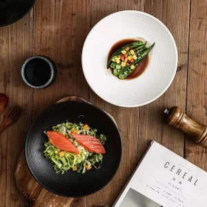 Японская тарелка для суши и набор ложек-вилок с черно-белой каменной текстурой для мероприятий общественного питания