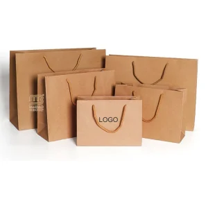 Биоразлагаемые коричнево-белые пакеты для товаров из крафт-бумаги, косметический бумажный пакет с индивидуальным логотипом, подарочный бумажный пакет на заказ с ручкой