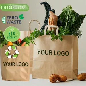 Бумажные пакеты для овощей с принтом на заказ для супермаркета, 100% биоразлагаемый простой коричневый бумажный пакет для продуктов из крафт-бумаги без ручек