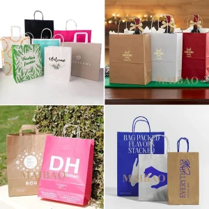 Оптовая продажа, дешевые пользовательские цветные детские подарочные пакеты на день рождения Goodie Party, пригодные для вторичной переработки коричнево-белые сумки из крафт-бумаги с логотипами