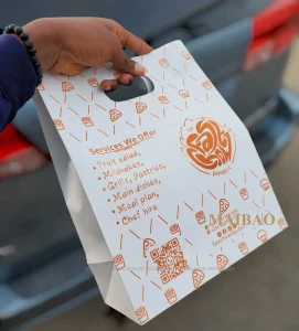Оптовая цена OEM бумажный пакет для доставки еды из переработанных коричневых крафт-бумажных пакетов для еды с высеченной ручкой большой бумажный пакет с логотипом