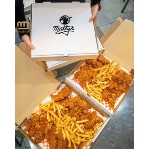 Коробки для пиццы на заказ с логотипом. Контейнеры для жареной курицы на вынос. Одноразовая еда. Одноразовая коробка для ланча с курицей и гамбургером.