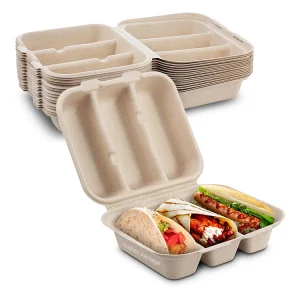 Биоразлагаемая коробка-раскладушка из сахарного тростника, упаковка для пищевых продуктов, жом, коробка для тако, одноразовая целлюлоза, держатель для тако с 3 отделениями и крышкой
