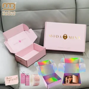 Оптовая продажа, розовая почтовая коробка из гофрированного картона с индивидуальным принтом, экологически чистая одежда, подарочная упаковка, картонная почтовая коробка, бумажная коробка для ухода за кожей