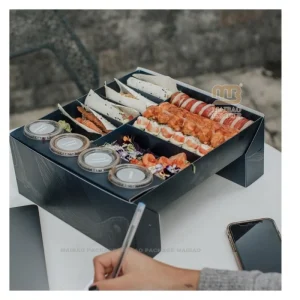 Пользовательские одноразовые картонные бумажные ланч-боксы для упаковки пищевых продуктов, суши-контейнер, коробка на вынос, суши-бокс с разделителями