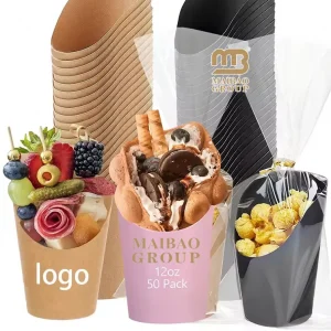 Печатный на заказ пищевой биоразлагаемый держатель для вафель из крафт-пузыря, одноразовые бумажные чашки на вынос, чашки для картофеля фри, чашка для мясных закусок