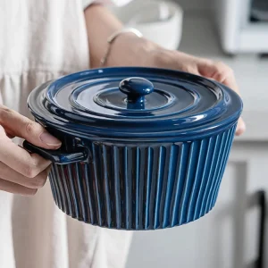 Скандинавские салатники Фарфоровая миска с крышкой Большая керамическая миска с 2 ручками