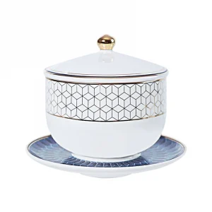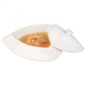 Треугольная белая суповая миска из фарфора для ресторана с крышкой
