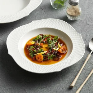 High-Grade Custom White Ceramic Dinner Plates Eco-Friendly Sustainable Home Soup Bowls for Porcelain Cutlery Party Rice Food