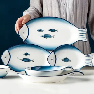 High Quality Creative Fish Shaped Plate Ceramic Serving Platter Fish Dish for Restaurant Home