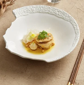 White Ceramic Bowl with Irregular Rock Pattern Eco-Friendly Hotel Dinner Soup Salad Dessert Cold Dish Unique Artistic Design