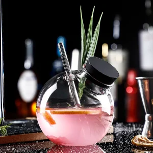Creative Gourmet Restaurant Bar Spherical Cocktail Glass Smoked Tumbler with Round Ball Straw for Whisky or Tea Cups & Saucers
