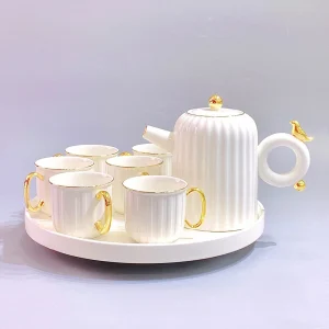 Creative Design Cup Sets White Ceramic Tea Pot and Six Cups Set With Serving Tray for Gift Set for Wedding Gift