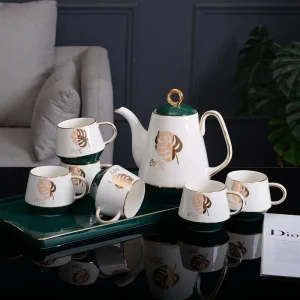 Customized Porcelain Tea Cup Set 8 Pcs Tea Pot and Cup Sets Ceramic Teapot Set