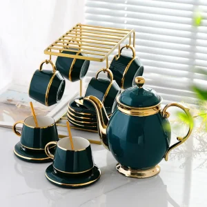 High Quality European Luxury Bone Porcelain Afternoon Tea Set Exquisite Gold Edge Ceramic Coffee Cup