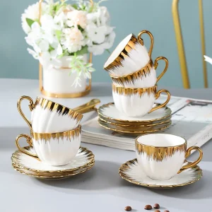 Luxury Gold-Plated European Coffee Cup Set Creative Flower Tea Ceramics for British Living Room Retro Home Decor
