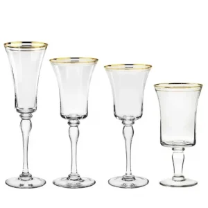 Подарочный набор бокалов для вина, оптовая продажа, бокалы для шампанского, прозрачные бокалы с золотой отделкой для вина для ресторана и отеля