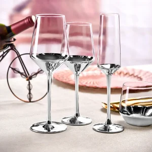Оптовая продажа, роскошные бокалы для вина на заказ, кристально чистые, уникальные бокалы для вина с длинной ножкой и серебряным дном для элегантной вечеринки