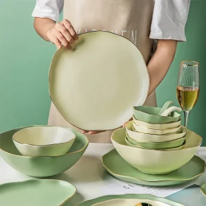 35-летний фабричный набор фарфоровых тарелок, набор столовой посуды, фарфоровый набор из зеленого золота, ресторан, супермаркет, керамические золотые тарелки