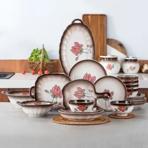 Nara Snow Embossed Ceramic Dinnerware Set Square and Oval Plates & Bowls Eco-Friendly for Home Use