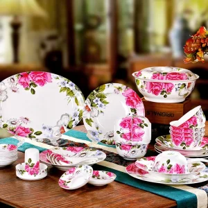 Wholesale Jingdezhen Ceramic Tableware Floral Bone China Tableware Bowls and Plates Set