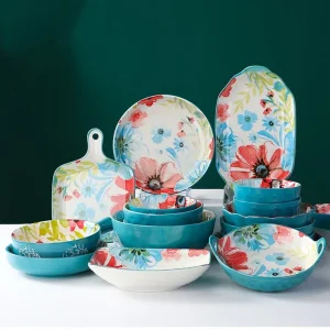 Wholesale Selling Floral Serving Dinner Plate Glazed Ceramic Dishes Soup Bowl