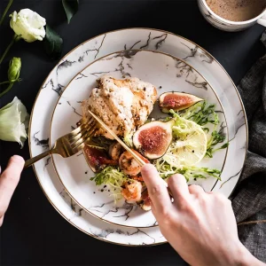 Высокая мода Мраморная посуда Мраморная посуда Керамический обеденный сервиз с золотой оправой для свадебных мероприятий, банкетов