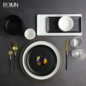 Гуанчжоу Новый фарфоровый цветной фарфоровый сервиз Белый Черный Столовый сервиз для поставщика отелей Ресторанная посуда Набор тарелок Посуда