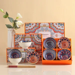 Bohemian Bowls Chopsticks Blue and White Ceramic Tableware Set Gift Bowls Wedding Returns Event Gifts Plates and Bowls Set